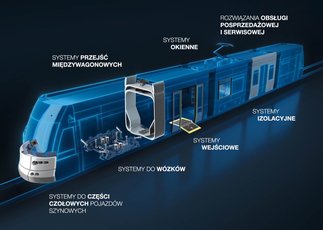 Dodatkowe produkty obejmują komponenty do wózków jezdnych, systemy bezpieczeństwa drzwi i uszczelnienia, systemy okienne, systemy izolacyjne, rampy, wyświetlacze kokpitu, systemy wspomagania maszynisty/motorniczego oraz systemy do części czołowych pojazdów szynowych.