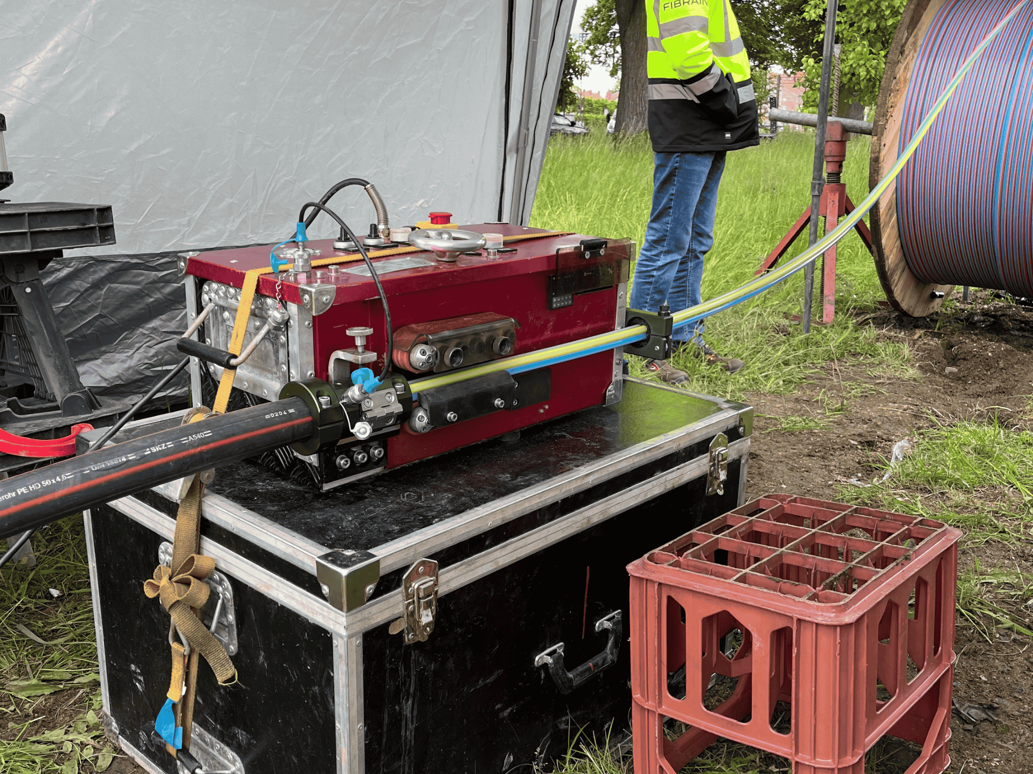Dura-Line, będąc na miejscu i nadzorując instalację, dopilnował, aby wykonawca PLK, ARMAT Sp. z o.o., użył urządzenia Terma MultiTyphoon do wdmuchiwania FuturePath Speed na odległość do 1 100 metrów, z prędkością do 30 metrów na minutę. Pozwoliło to ARMAT ograniczyć liczbę punktów dostępu międzystrefowych do zaledwie 10, co stanowi 50% redukcję w porównaniu z luźnymi mikrorurami. Jeden bęben umożliwił łatwiejszy transport i manewrowanie na placu budowy, a montaż i demontaż przebiegły gładko. Luźne mikrorury zazwyczaj nie leżą tak płasko w kanale podrzędnym jak te w wiązce, co może wpłynąć na wydajność wdmuchiwania kabla. Jednak dzięki prostemu i jednolitemu ułożeniu wiązki FuturePath w kanale podrzędnym, mikrokabel Fibrain MetroJET MK-LXS6 (36 włókien, 5,3 mm średnicy) mógł zostać zainstalowany płynnie, a trzy mikrorury pozostały wolne na przyszłe modernizacje.