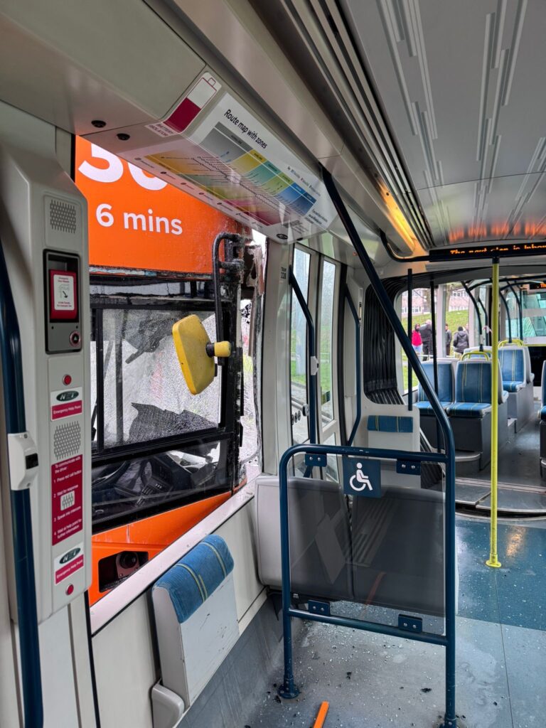 W czwartek, 19 lutego, tuż po godzinie 9:00 w miejscowości Chilwell w hrabstwie Nottinghamshire (Wielka Brytania) doszło do zderzenia tramwaju z autobusem na przystanku Inham Road. W wyniku kolizji tramwaj jadący w kierunku Hucknall wykoleił się, a oba pojazdy zostały poważnie uszkodzone.